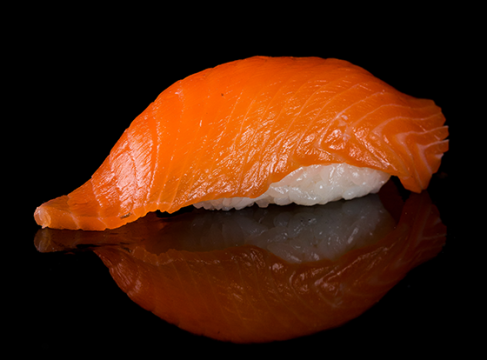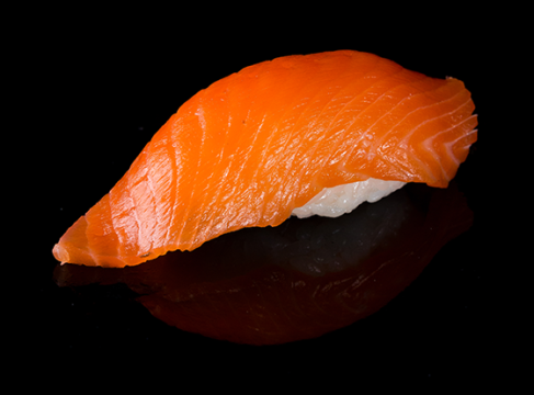 Суши нигири с душистым подкопчёным лососем.