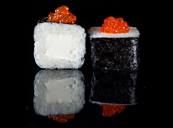 Благородная простота - ролл с икрой лосося и сливочным сыром.