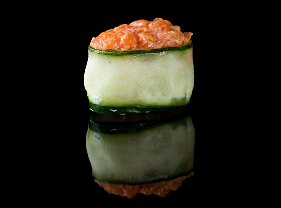 Суши гункан с лососем и острым соусом!