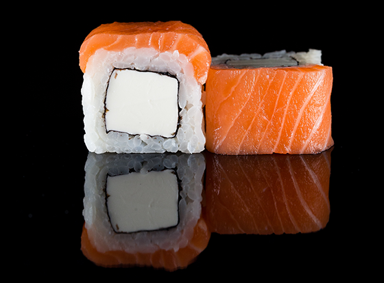 Ролл с норвежским лососем и сливочным сыром.