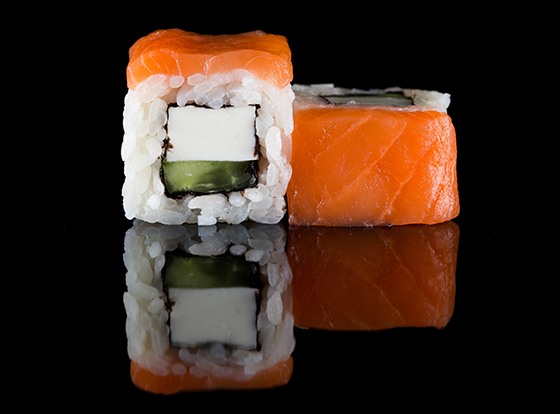 Ролл с норвежским лососем, огурцом и сливочным сыром.