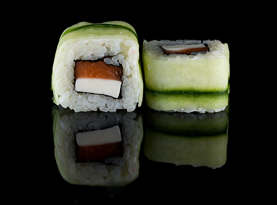 Ролл с лососем, огурцом и сливочным сыром.