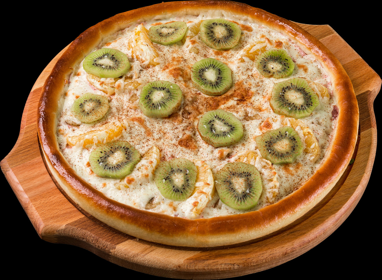 Йогурт клубничный, апельсин, банан, киви, сыр моцарелла, корица.