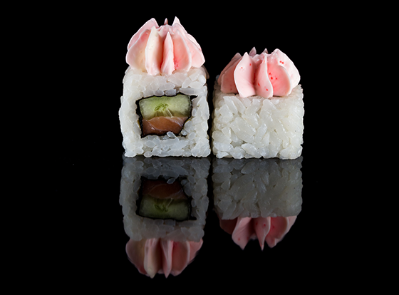 Популярнейший ролл с шикарным соусом лава, а так же норвежский лосось и огурчик.
